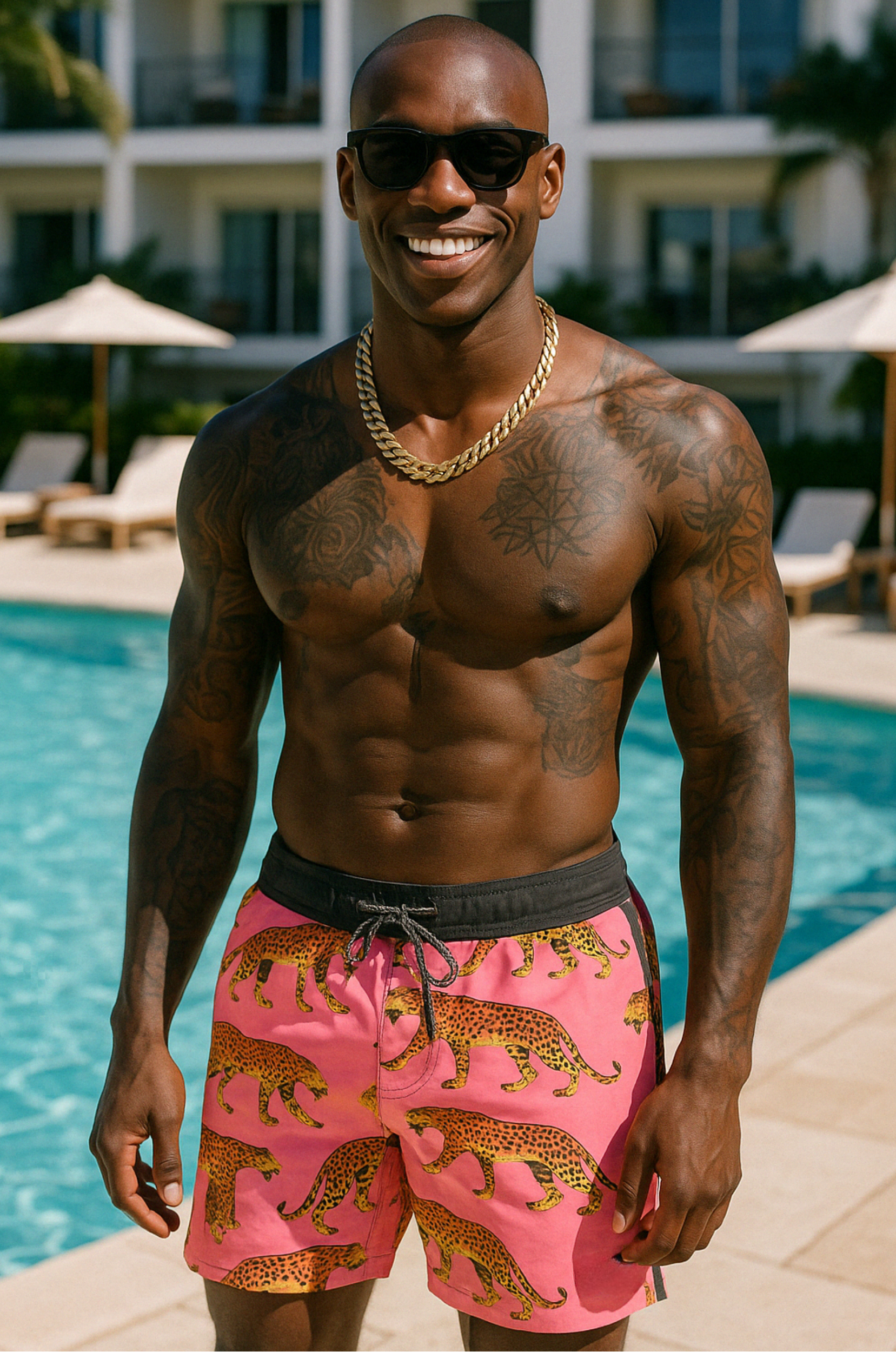 Leopard Parade Swim Shorts – Flamingo Pink Edition